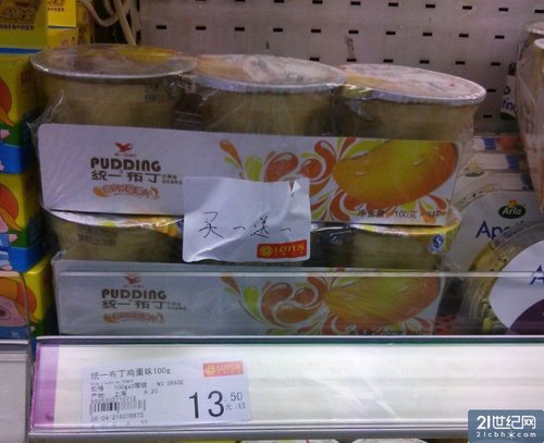 統一涉事產品布丁在大陸超市買一送一