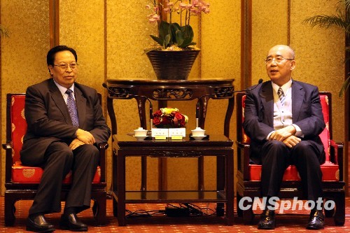 中新社臺北十二月十四日電 (記者 曾嘉 陳立宇)中國國民黨榮譽主席吳伯雄,十四日晚間在臺北圓山飯店會見了率團前來臺灣參訪的中共中央委員、原河南省委書記徐光春。