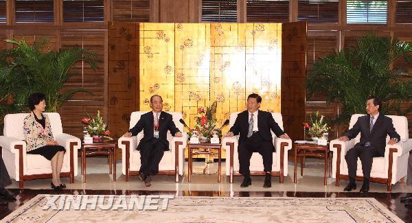 中共中央臺辦、國務院臺辦主任王毅,中國人民銀行行長周小川,中共海南省委書記衛留成,海南省省長羅保銘等參加了會見。