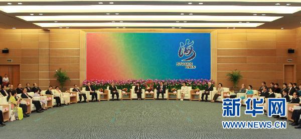 6月19日,中共中央政治局常委、全國政協主席賈慶林在廈門會見出席第二屆海峽論壇的兩岸各界人士。新華社記者 龐興雷 攝