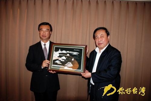 閻啟俊書(shū)記向高雄市莊啟旺議長(zhǎng)贈(zèng)送工藝品(你好臺(tái)灣網(wǎng) 圖)