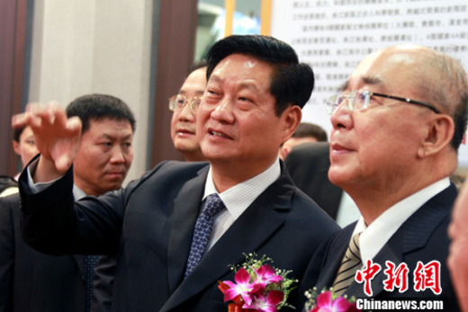 9月14日,陜西省代省長趙正永率團(tuán)在臺北出席2010臺灣陜西周活動。當(dāng)日,中國國民黨榮譽(yù)主席吳伯雄應(yīng)邀參加“陜西風(fēng)情節(jié)”活動,趙正永為吳伯雄作導(dǎo)覽。中新社記者 劉舒凌 攝