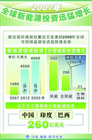 2007年全球新能源投資迅猛增長(圖)