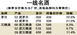 附:1~4月部分一二線名酒品牌產品漲幅表