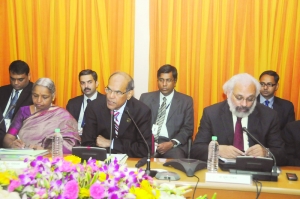 澳大利亞央行3日召開月度貨幣政策會議,決定繼續維持當前4.75%的基準利率不變。這是澳大利亞央行今年以來第四次作出上述決定,符合此前市場預期。澳大利亞央行行長格倫·史蒂文斯當天表示,雖然近期公布的經濟數據顯示澳大利亞通脹水平超過預期,但與2008年相比通脹水平仍處下降態勢,通脹依然可控。然而,從長期看來,通脹水平預計會伴隨經濟發展而繼續升高。圖為印度央行行長杜武里·蘇巴拉奧(前排中)在記者招待會上。