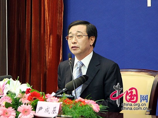 人力資源和社會保障部新聞發(fā)言人尹成基。中國網(wǎng) 張琳 攝
