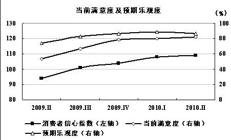 中國經(jīng)濟(jì)網(wǎng)北京8月12日訊(記者 梁夢晚)2010年8月12日,北京:國家統(tǒng)計局中國經(jīng)濟(jì)景氣監(jiān)測中心與尼爾森公司聯(lián)合開展的中國消費者信心調(diào)查顯示,2010年二季度中國消費者信心指數(shù)為109,比一季度提高1點,已連續(xù)五個季度持續(xù)上升;其中農(nóng)村消費者信心繼續(xù)攀升,城市消費者信心有所回落。