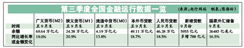 數據顯示,人民幣貸款前三季度增加6.30萬億元,9月份增加5955億元,不但高于7、8月份數據,也高于市場預期的5000億元左右,顯示季末銀行放貸的沖動。