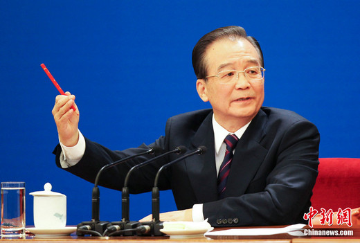 3月14日,國務院總理溫家寶在北京人民大會堂與中外記者見面,并回答記者提問。中新社發 王中舉 攝