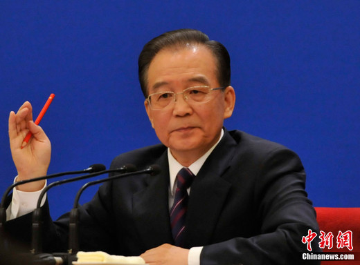 3月14日,國務院總理溫家寶在北京人民大會堂與中外記者見面,并回答記者提問。中新網記者 楊磊攝