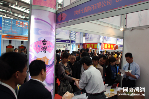 5日上午的西洽會上,臺灣展商忙碌的招待前來咨詢、購買的消費人群。(中國臺灣網 楊麗 攝)