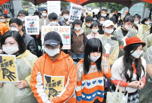 中國(guó)臺(tái)灣網(wǎng)11月18日消息 據(jù)臺(tái)灣“聯(lián)合新聞網(wǎng)”報(bào)道,兩百多名臺(tái)灣《蘋果日?qǐng)?bào)》員工昨(17)天頂著寒風(fēng)細(xì)雨,在《蘋果日?qǐng)?bào)》總社門口“封街”抗議臺(tái)灣壹傳媒交易,高喊“我要蘋果、不要黑手”。