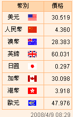臺幣匯率公告2008.04.09