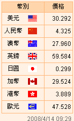 臺幣匯率公告2008.04.14