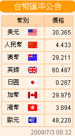 臺幣匯率公告2008.07.03