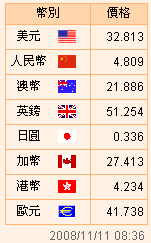 臺幣匯率公告2008.11.11