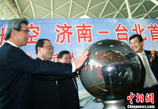 一片掌聲中,濟南市政府副秘書長耿建新先生和臺灣長榮航空公司總經理鄭光遠先生分別就首航成功發表簡短演說。耿建新對長榮航空公司“沖破初冬的寒霧”順利抵達濟南表示歡迎。相信這一航線的開通,“必將成為促進兩岸文化、旅游、經貿大發展的新的空中絲綢之路”。
