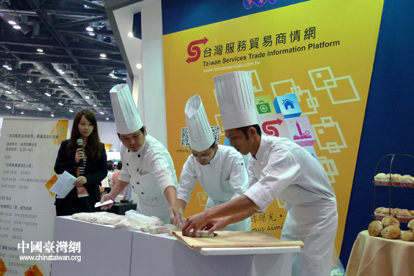 獲得國際大獎的臺灣糕餅師傅現(xiàn)場進(jìn)行西點(diǎn)制作(中國臺灣網(wǎng) 李徽 攝)
