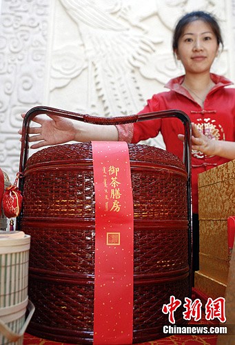 據中新網財經頻道了解,在某購物網站搜索“月餅禮盒”,價格最高的是號稱“故宮督造”的御茶膳房天圓籃,標價1880元,銷售信息顯示該禮籃包括6種口味24個粽子、五福餅1盒、茶寶1個、蓋碗1個、竹筒茶1個、古越龍山十年陳釀一套,紅色香包配飾1個。