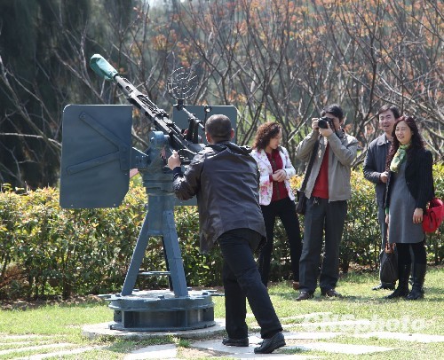 目前中國大陸已有25個(gè)省市居民可經(jīng)福建與金門、媽祖的“小三通”通道赴臺旅游,金門因而成為大陸游客的旅游新熱點(diǎn)。圖為金門的戰(zhàn)地景物吸引大陸游客攝影留念。 中新社發(fā) 耿軍 攝