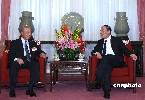 中共中央政治局委員、國務院副總理王岐山16日在中南海紫光閣會見以辜濂松為團長的臺灣工商界考察團。他強調,兩岸要抓住機遇,營造良好環境,推動兩岸經貿合作不斷深化。