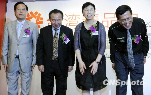 5月26日,臺灣高科技知名品牌的企業(yè)領(lǐng)導人在北京舉行新聞發(fā)布會,介紹即將在第十三屆中國北京國際科技產(chǎn)業(yè)博覽會上亮相的的“臺灣精品館”。圖為臺北世界貿(mào)易中心處長李惠玲女士(右二)、友訊科技公司執(zhí)行長曹安邦(左二)、美利達公司總經(jīng)理許世彥(右一)和雷虎科技公司董事長賴春霖(左一)等出席儀式。 中新社發(fā) 劉震 攝