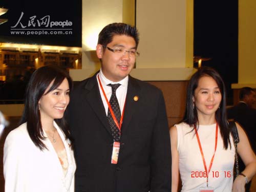 中國國民黨榮譽主席連戰的女兒連惠心(右)、兒子連勝文(中)及女友蔡依珊(左)也來參加兩岸農業合作論壇。