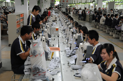 這是8月2日拍攝的泉州市一家大型鞋服企業(yè)生產(chǎn)車間一角。這家企業(yè)積極實施工資集體協(xié)商穩(wěn)定職工隊伍。 新華社記者 來建強 攝