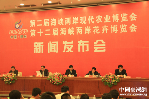 中國(guó)臺(tái)灣網(wǎng)11月17日漳州消息 第二屆海峽兩岸現(xiàn)代農(nóng)業(yè)博覽會(huì)·第十二屆海峽兩岸花卉博覽會(huì)(以下簡(jiǎn)稱“第二屆農(nóng)博會(huì)·第十二屆花博會(huì)”)新聞發(fā)布會(huì)于今日下午召開,福建省政府新聞辦副主任盧承圣擔(dān)任主持,漳州市副市長(zhǎng)王耀泉出席并介紹本屆博覽會(huì)相關(guān)情況,漳州市臺(tái)商企業(yè)協(xié)會(huì)會(huì)長(zhǎng)廖萬(wàn)隆、福建省林業(yè)廳副廳長(zhǎng)蘭思仁、福建省農(nóng)業(yè)廳副廳長(zhǎng)姜紹豐一同出席此次發(fā)布會(huì)。