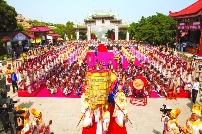 首屆海峽論壇首場民間交流活動在湄洲島舉行,兩岸媽祖信眾在湄洲祖廟隆重舉行祭祀媽祖祈福大典。陳建平 攝