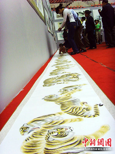 惟妙惟肖的《百虎圖》讓眾多參觀者駐足欣賞。孟幻 攝