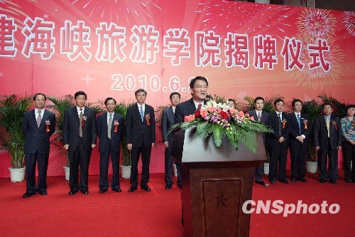 6月21日,福建師范大學與臺灣世新大學合作辦學的福建海峽旅游學院在福建師范大學旗山校區正式揭牌。臺灣世新大學副校長熊杰在揭牌儀式致辭中表示,福建海峽旅游學院的創立對兩岸教育合作具有里程碑意義,也為兩岸未來和諧發展略盡綿薄之力。 中新社發 李玉蓮 攝