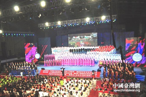 中國臺灣網6月22日福州消息 21日晚,由中國音樂家協會、福州市政府和福建省對外文化交流協會聯合主辦的“海峽論壇·第三屆海峽兩岸合唱節”在福州市體育館舉辦了閉幕式暨頒獎音樂會。本屆合唱節共有來自海峽兩岸的19支合唱隊參加表演,參賽人數逾千人。他們在4天的時間里,以歌為媒、以歌傳情,充分享受了藝術的盛宴,分享了共同的歡樂。