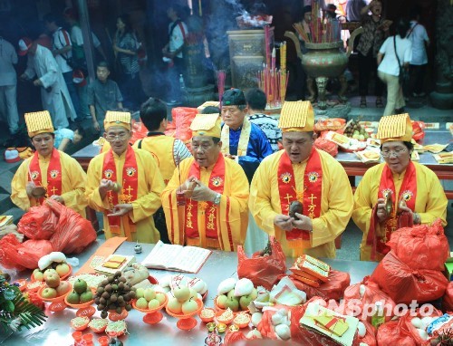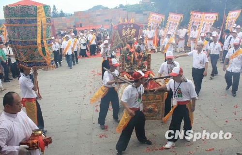在關帝文化旅游節(jié)開幕前,來自臺灣的高雄縣東照山關帝廟、礁溪協(xié)天廟、日月潭文武廟、金門關帝廟、臺中大明宮、臺中醒修宮等百家關帝宮廟,以及大陸的山西省解州關帝廟、湖北省當陽關帝廟、河南省洛陽關帝廟等3家關帝廟,信眾共2000多人,23日首次歡聚在東山關帝廟前廣場,舉行了隆重的祭典關帝儀式。