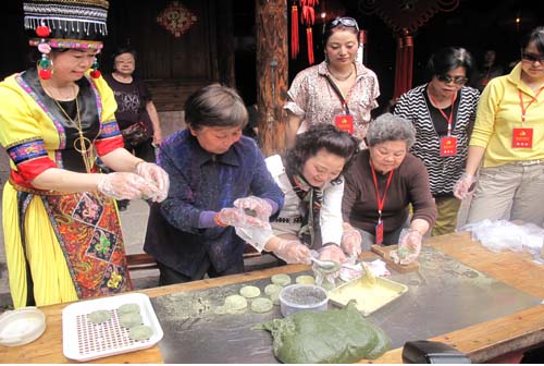 兩岸“十佳婆媳”代表在滕頭村現場制作青團。