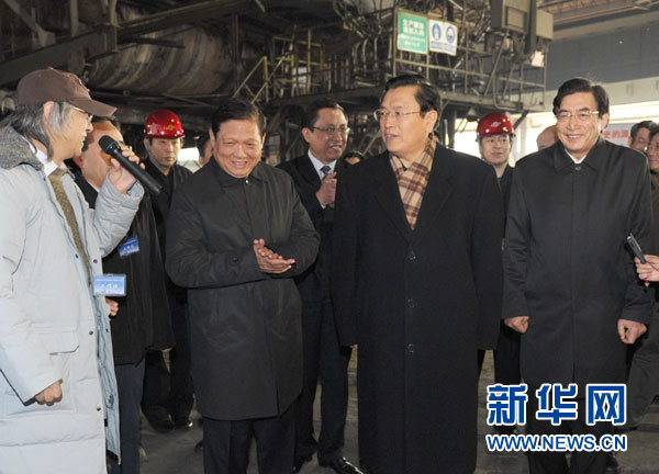 1月13日,中共中央政治局委員、國務院副總理張德江出席首鋼北京石景山鋼鐵主流程停產儀式并發表講話。這是張德江出席停產儀式后參觀已經停產的三高爐。新華社記者馬占成 攝