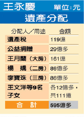 王永慶遺產分配 圖片來源:臺灣《聯合報》
