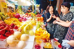 臺灣水果質量佳,是不少觀光客赴臺必吃美味,圖為兩名大陸游客在攤位前試吃,頻頻稱贊臺灣水果好甜。圖片來源:臺灣《中國時報》