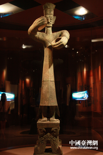 造型奇特的“東方巨人”青銅大立人(中國臺灣網 趙輝 攝)