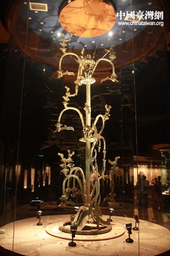 三星堆博物館的鎮館之寶“青銅神樹”(中國臺灣網 趙輝 攝)