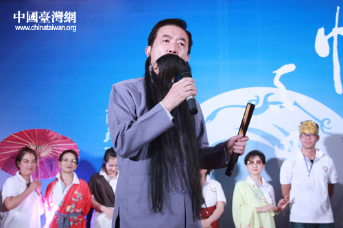 臺灣嘉賓團團長焦仁和興致勃勃地唱起了京劇(中國臺灣網 趙輝 攝)