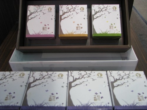 桂花小鋪種植了三千坪的桂花樹,也源自于此,桂花系列產(chǎn)品因此而研發(fā)產(chǎn)生。桂花產(chǎn)品制作過程繁復(fù),桂花就像是粒粒的黃金,需要慢慢的挑選才能制作出好的桂花系列產(chǎn)品,目前已經(jīng)研發(fā)出桂花蜜、桂花牛軋?zhí)恰⒐鸹ú琛⒐鸹反住⒐鸹鄞准肮鸹贰R彩欠▏蛷dPASADENA的御用商品,具有質(zhì)量保證。