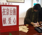 我們大家都很關(guān)心此次雪災(zāi)中的受災(zāi)同胞。上午我在所在社區(qū)已經(jīng)進(jìn)行過(guò)捐獻(xiàn)活動(dòng),下午北京市臺(tái)協(xié)組織的捐獻(xiàn)活動(dòng)我依然要來(lái)參加,希望能通過(guò)自己的實(shí)際行動(dòng),達(dá)到拋磚引玉的效果,有更多的人士參與進(jìn)來(lái),幫助災(zāi)區(qū)人民共度難關(guān)。讓每個(gè)人都貢獻(xiàn)力量,大家攜起手來(lái)幫助災(zāi)民,讓災(zāi)區(qū)在最短時(shí)間內(nèi)生活恢復(fù)正常;讓災(zāi)區(qū)群眾在大家的努力下克服雪災(zāi),共度難關(guān)。 |
