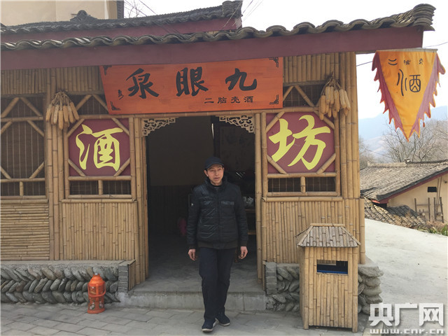 45歲的朱緒高就是其中的一個受益者。憑著祖傳的釀酒手藝,在政府的扶持下,朱緒高開辦了九眼泉二腦殼酒坊,售賣自家土方釀制的純糧食酒和果酒,酒坊自2016年開辦以來至今已售出一千多斤酒,獲得三四萬的收益。朱緒高一開始對在深山里做酒坊生意猶豫不決:“誰敢在山里開酒坊呢,擔心賣不出去。”酒香不怕巷子深,朱家溝村開展鄉村旅游吸引大批游客之后,老朱的自釀酒如今終于香飄千里。