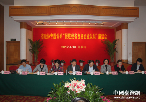 中國臺灣網4月12日馬鞍山消息 4月10日,安徽省政協調研組在省政協常委、港澳臺僑和外事委員會主任林文森的率領下,來馬鞍山市進行“促進我省臺資企業發展”專題調研,安徽省臺辦主任朱德祥,馬鞍山市政協秘書長仇傳友,市臺辦主任李強等相關部門負責人參加調研。