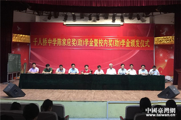 中國臺灣網(wǎng)5月18日舒城訊 5月15日下午,2017-2018學年度陳家應獎學金頒獎儀式在安徽省舒城縣千人橋中學舉行。舒城縣委統(tǒng)戰(zhàn)部、縣臺辦負責同志出席儀式。