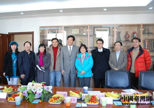 中國臺灣網3月8日北京消息 3月7日下午,臺灣臺中市新聞局局長石靜文一行六人到北京電影學院參觀。北京電影學院黨委書記侯光明書記、黨委副書記王黎光、副院長孫立軍及王宏民、鐘大豐、章啟富、陸花、王煜華、俞劍紅等學院部門單位領導和北京市臺辦宣傳處處長金秀清同來京臺胞進行了交流溝通。