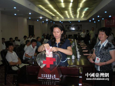 伊川縣統戰部、臺僑辦、工商聯機關干部,商會會員企業、臺資企業和臺僑屬代表紛紛慷慨解囊,奉獻愛心。伊川縣委常委、統戰部長李益玲率先捐款。