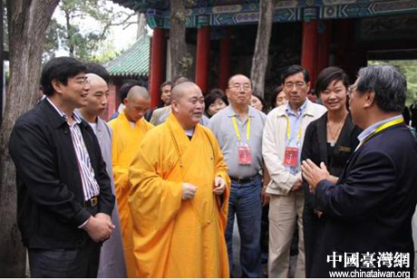 觀禮團(tuán)成員與少林寺方丈釋永信交流 圖片來源:河南省臺辦