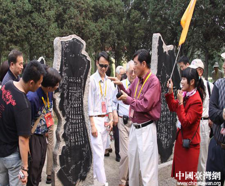 觀禮團一行在殷墟博物苑參觀甲骨文牌刻 圖片來源:安陽市臺辦